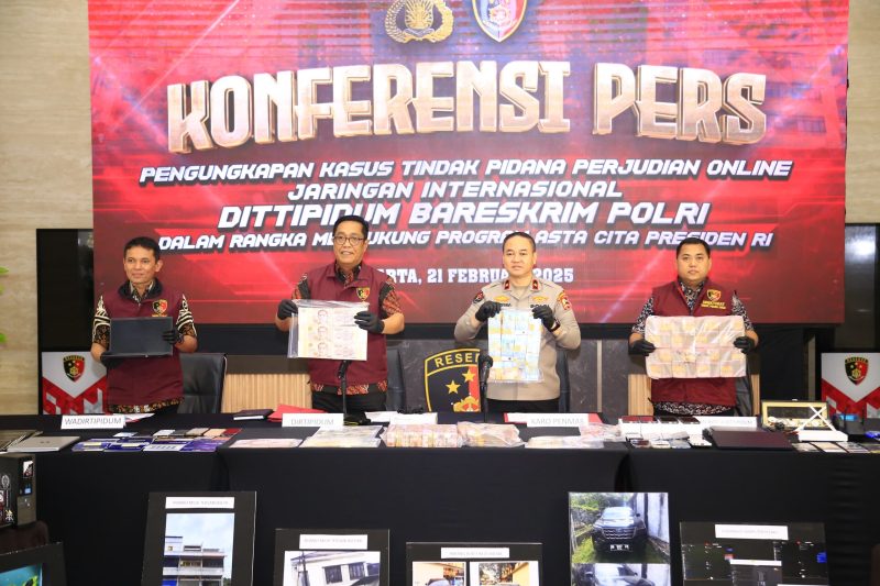 Direktur Tindak Pidana Umum (Dirtipidum) Bareskrim Polri Brigjen. Pol. Djuhandani Rahardjo Puro mengatakan, kesembilan tersangka ditangkap di dua wilayah berbeda. Mereka mengoperasionalkan judi online (judol) jaringan internasional, dengan situs 1XBET yang servernya berada di Eropa.