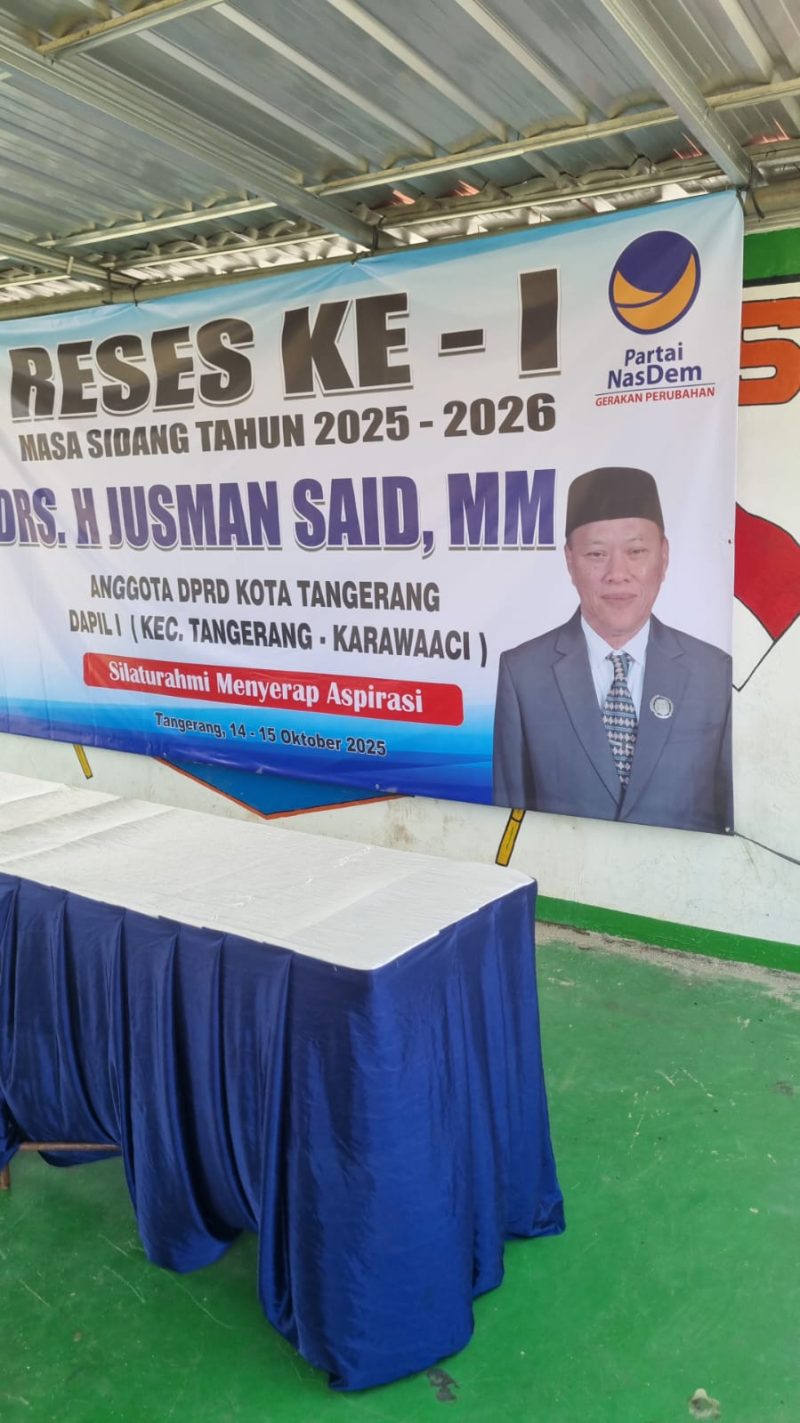 INFO7.ID, Tangerang | Suasana di Kelurahan Cimone, Kecamatan Karawaci, Kota Tangerang, mendadak heboh usai pelaksanaan Reses ke-1 Anggota DPRD Kota Tangerang dari Partai Nasdem, H. Jusman Said. Alih-alih menjadi ajang menyerap aspirasi masyarakat, acara tersebut justru menuai sorotan tajam dari warga sekitar. Pasalnya, reses yang digelar 14-15 Oktober lalu itu hanya dihadiri kerabat dekat, sanak saudara, dan segelintir warga terundang saja. Sementara, warga yang tinggal persis di lokasi acara justru merasa terabaikan.