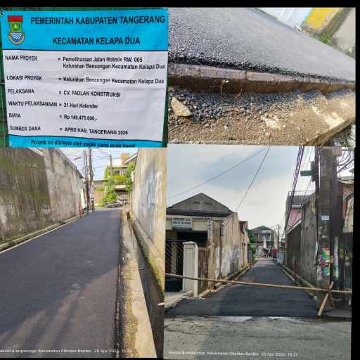 INFO7.ID, TANGERANG | Proyek pemeliharaan jalan hotmix di wilayah RW 11, Kelurahan Bencongan, Kecamatan Kelapa Dua, Kabupaten Tangerang, yang bersumber dari APBD Kabupaten Tangerang Tahun Anggaran 2026 dengan nilai anggaran hampir seratus lima puluh juta rupiah, menjadi perhatian setelah muncul dugaan ketidaksesuaian pelaksanaan pekerjaan di lapangan.