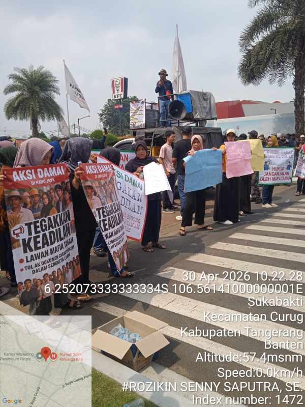 INFO7.ID, TANGERANG | Aksi damai yang digelar warga Desa Kadu Jaya, Kecamatan Curug, Kabupaten Tangerang berlangsung tertib namun penuh semangat. Ratusan warga turun ke lapangan menyuarakan tuntutan atas hak kepemilikan tanah yang diduga terancam oleh praktik yang tidak sah.